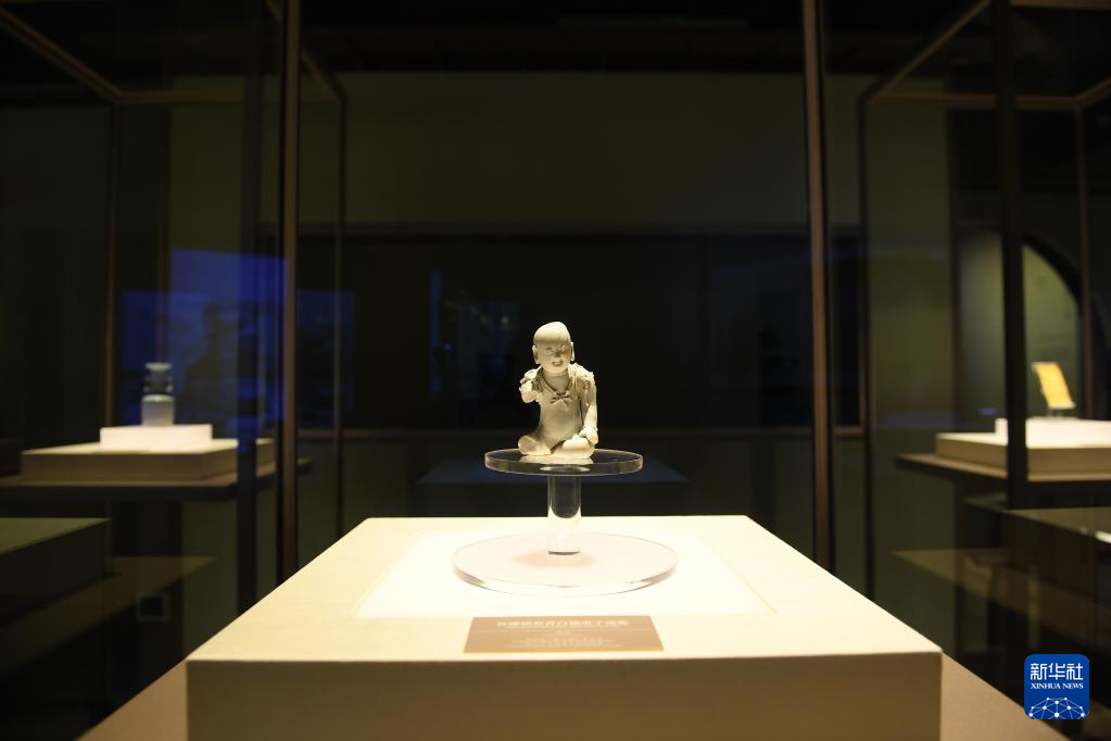 南宋德寿宫遗址博物馆陈列的出土于杭州的青白瓷童子像(11月14日摄)。新华社记者翁忻旸/摄