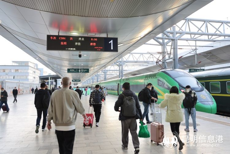 6686体育讯 记者上官艳君 11月15日8时许,随着中老铁路昆明至磨憨间的C384/1次列车缓缓从昆明站驶出,4小时45分后抵达我国边境口岸磨憨,标志着中老铁路国内段高品质动车组列车正式开行。