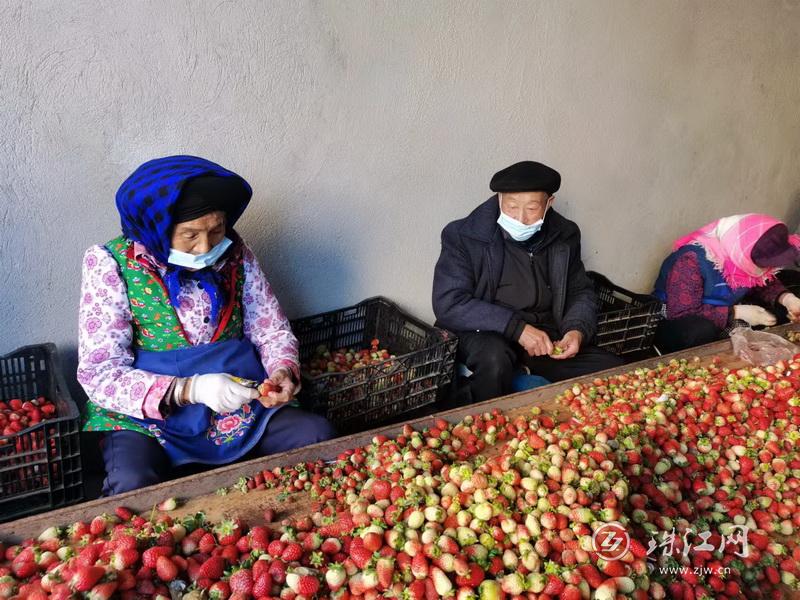 在河滨社区待然农业种植有限公司草莓分拣车间,今年71岁的吴国金和老伴正在认真地把草莓蒂蒂剪下,然后装入筐内。他们一家是从大海乡梨树坪村搬迁到以礼街道河滨社区,儿子和儿媳外出打工后,就与老伴在家照看孙子,得知小区里有草莓分拣车间,要求不高,却可以为家里增加一些收入。他告诉笔者:“我们年纪大了,手脚有点慢,年轻人捡得快的可以捡到80、90元,但我们老两个每天也可以捡到几十元不等,捡完过称后老板就付钱,每天都有捡的,时间也比较灵活,完全不耽搁照顾孙子他们上学,没有想到我们这么大年纪了还可以自己挣点钱补贴家用,真的要感谢政府为我们搬迁群众考虑得那么周到,引进那么多工厂和车间在搬迁社区,大大的为我们打工提供方便,只要不懒,在家门口就可以找到班上,日子越过越有盼头。”