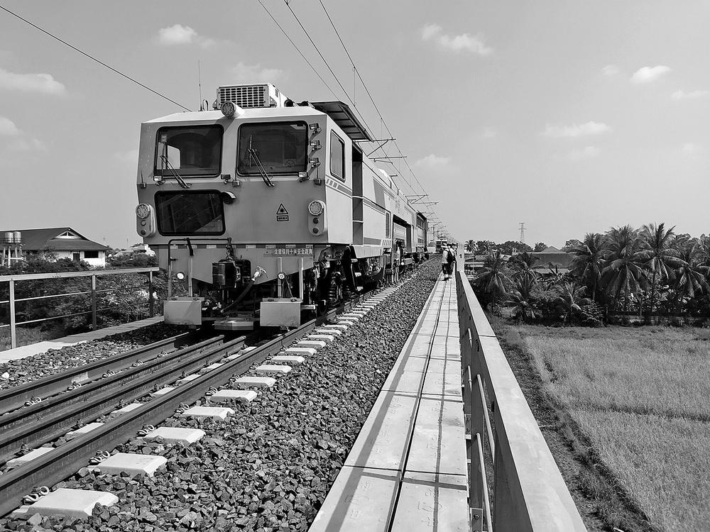 11月16日,一列由我国自主生产的捣固稳定车和道岔捣固车,组成大型养路机械施工车组,进入中老铁路老挝段,正式对线路设备进行养护,让列车运行更平稳更安全。