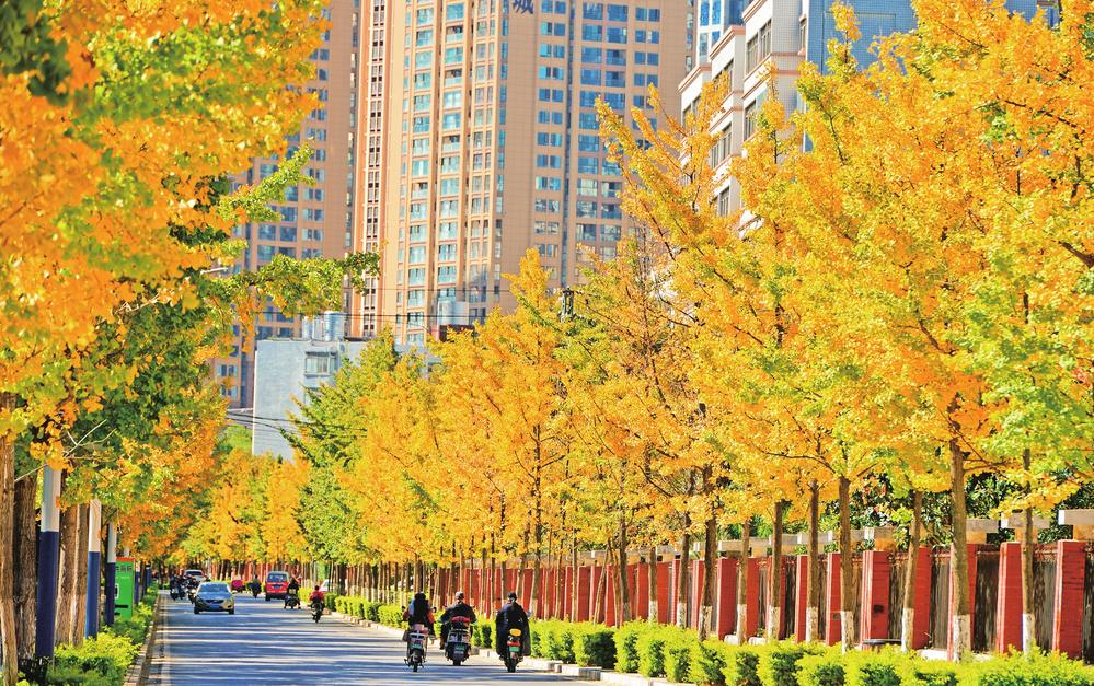 盘江西路银杏大道 金色光影伴归家