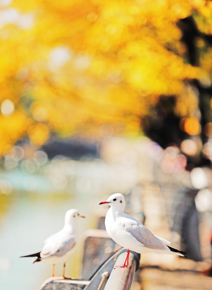 大观河 滇朴变黄日,海鸥飞落时。