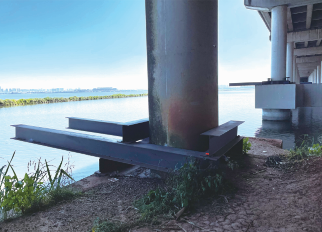 昨天,记者在现场看到,高海高速桥面下净空高度约4米,可以满足草海绿道的空间要求。深埋在滇池水体之下的高海高速桥梁墩柱有4排,作为浮桥基础的工字钢已固定在墩柱平台并向外延伸,钢架上将铺设木板。