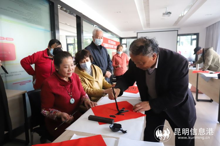 11月14日,云南省文化馆老年艺术大学教师、书法家、画家李月生来到人和新居小区。活动开始,李月生老师先给住户展示了自己的书法作品。一幅幅气势蓬勃的作品展开,引得现场称赞不断。