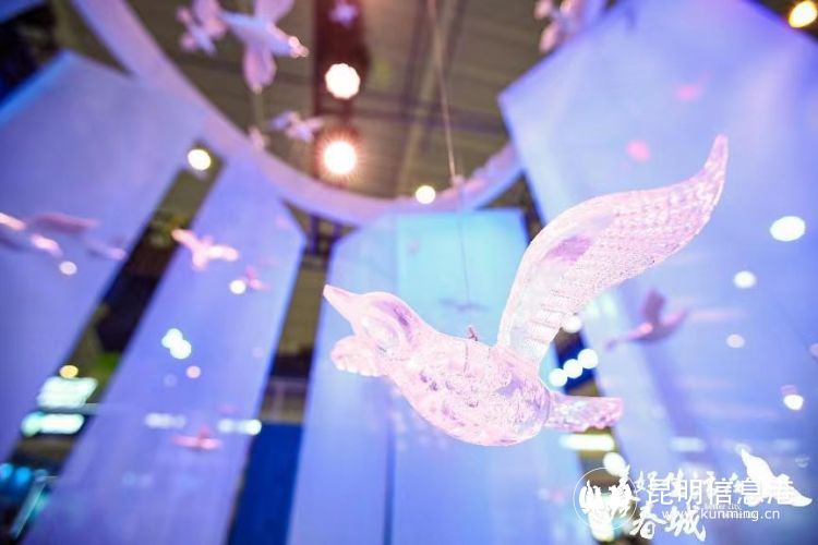在昆明滇池国际会展中心11号馆内,昆明展区以别具一格的山水生态概念呈现,主色调以昆明蓝、生态绿和现代白,充分展示昆明厚重的历史人文之美、绿色生态环境之美、和谐繁荣的盛世之美。整个展厅设计从昆明特色景点滇池西山景观、金马坊、大观楼、昆明八景诗画等汲取灵感,植入立体生态元素山茶花、大象、海鸥等,运用现代元素和调性勾勒出具有时代气息的开放式展厅。