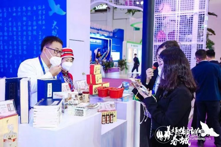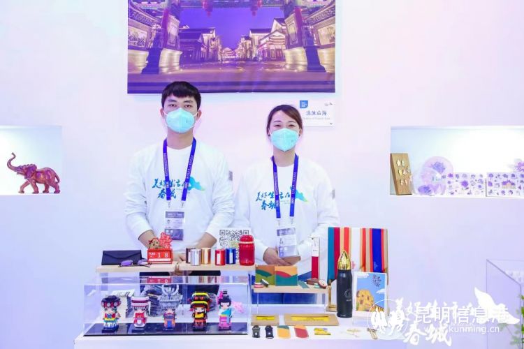 南博会现场,昆明展区各参展企业带来了众多的传统工艺品、特色食品和文创产品。作为非遗代表的斑铜、云子、面塑等传承作品,让古老手艺焕发新彩;健康的绿色食品、融合了科技的文创产品等“春城好物”,充分展现了昆明各县区绿色食品产业、文化创意产业、消费休闲产业等城市名片。值得一提的是,作为昆明文创品牌代表的讲武文创带来了以昆明各主题景观和人文元素设计开发的“昆明角色家族”IP系列产品让观展观众参与抽奖,还有主题人偶与观众互动,为展会增添趣味性与体验感。同时带来了各具特色的县区文创主题系列产品、蓝花楹主题IP文创、COP15主题文创等自有产品来到本次展会现场,希望通过昆明系列文创产品的展示,宣传好昆明,讲好昆明故事。