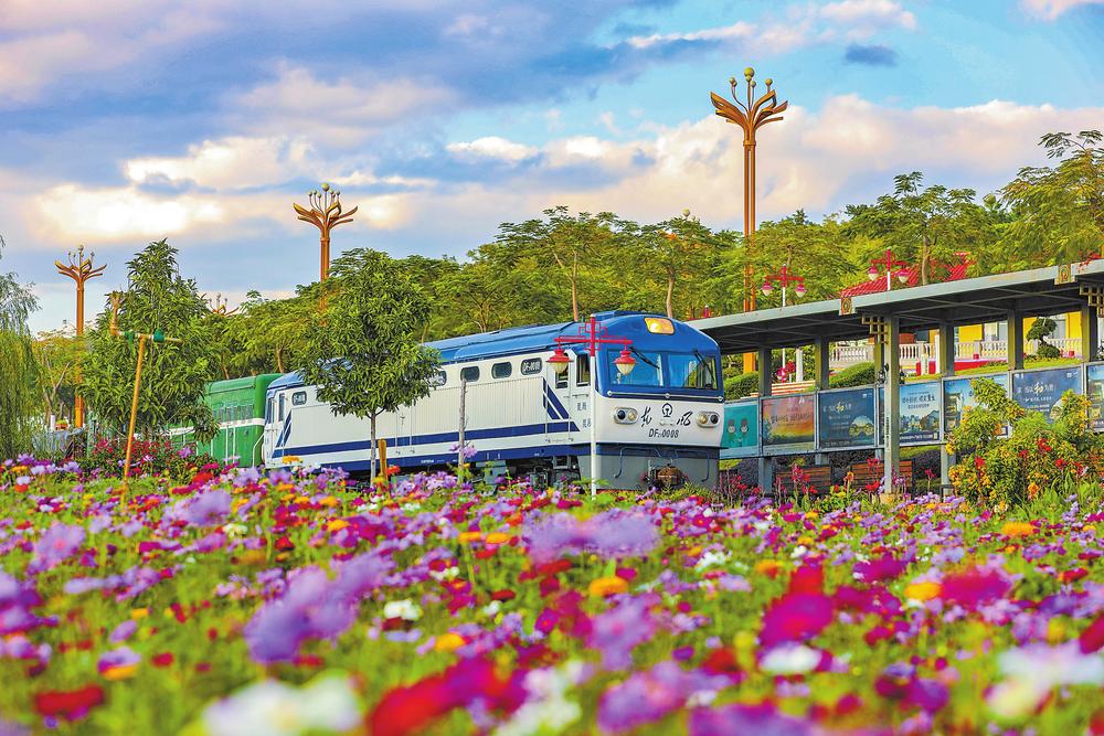 火车穿过开远市1909广场 本报通讯员陶家淇/摄