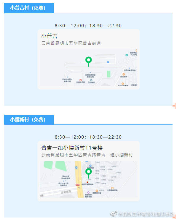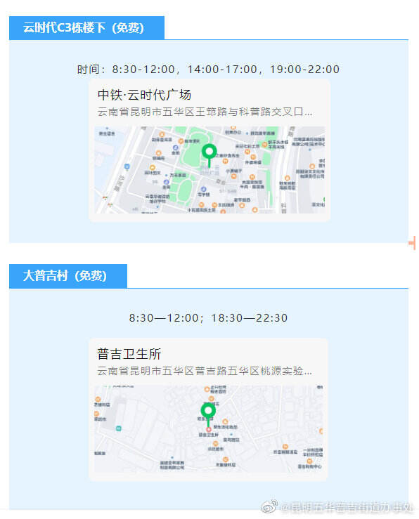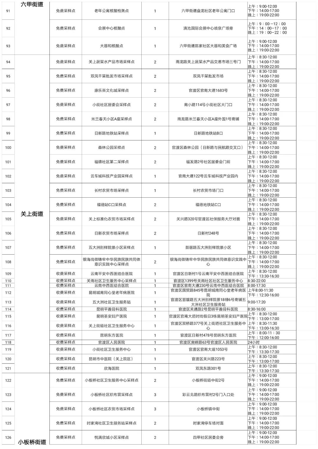 为方便辖区居民就近就便进行核酸检测,2022年11月23日—25日护国街道辖区免费核酸检测采样点位如下,请居民群众自行前往进行检测。