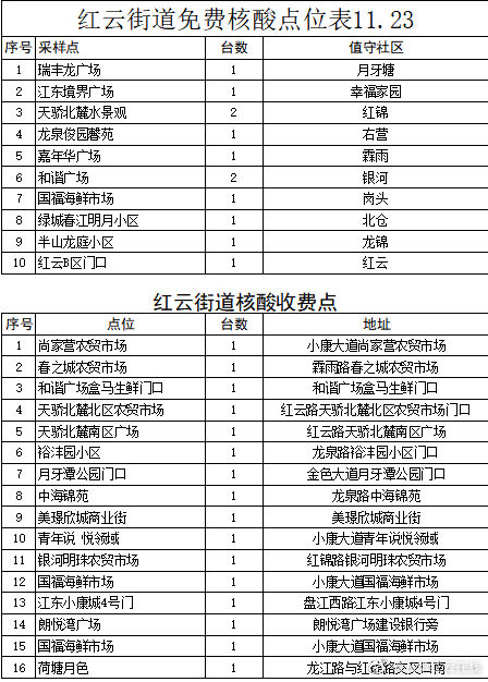 红云街道核酸检测采样点位