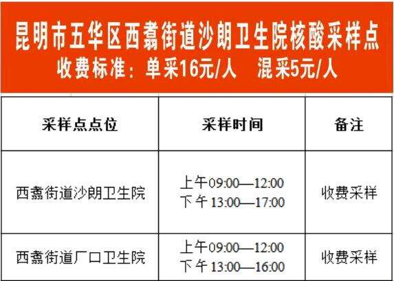 西翥街道核酸检测采样点位