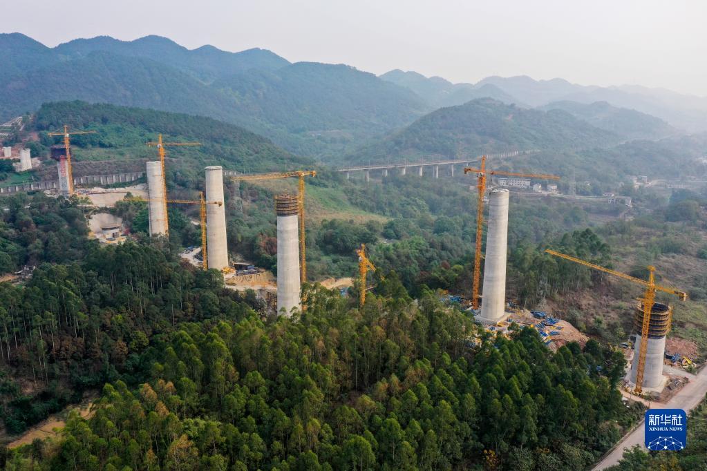 这是11月28日拍摄的建设中的渝昆高铁川渝段华福大桥(无人机照片)。记者王全超/摄