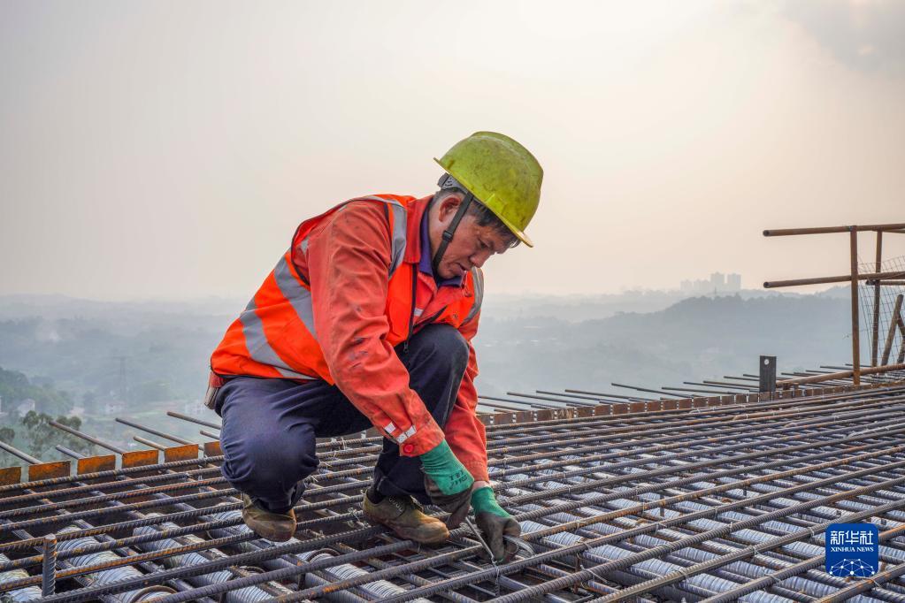 11月28日,工人在渝昆高铁川渝段华福特大桥施工现场作业。记者朱高祥/摄