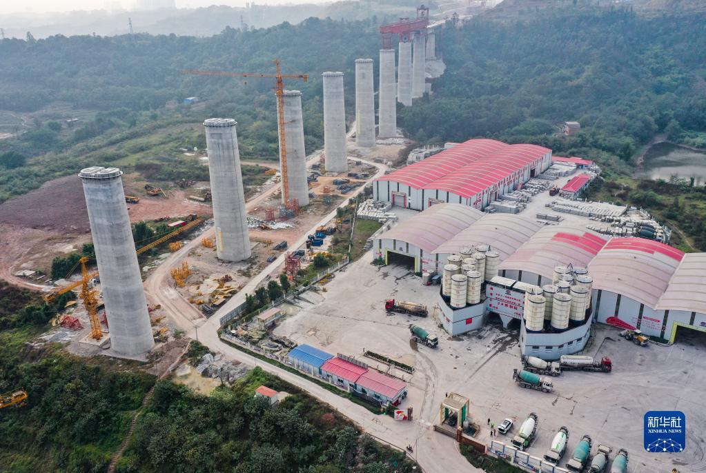 这是11月28日拍摄的渝昆高铁川渝段站前一标2号拌和站作业现场。记者朱高祥/摄
