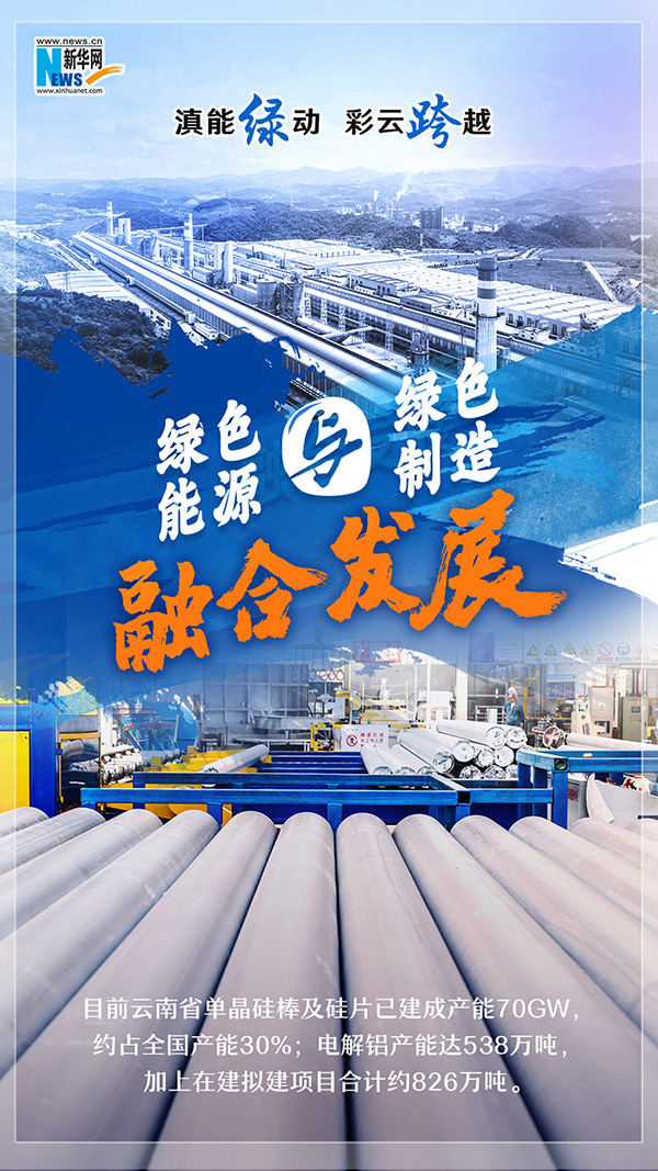 近年来,云南发挥绿色能源优势,吸引国内、国际一流的铝、硅企业等市场主体落地云南,带动延长产业链的加工制造、配套的原辅料、耗材等向云南转移。全球领军的光伏生产企业隆基股份深耕云南,在曲靖、丽江、保山、楚雄建立制造基地,并带动晶澳科技、通威股份、阳光能源等知名企业入滇,使云南跻身全球重要的绿色单晶硅光伏材料生产基地。