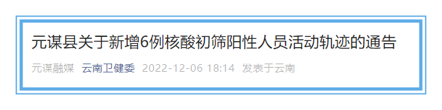 元谋县关于新增6例核酸初筛阳性人员活动轨迹的通告