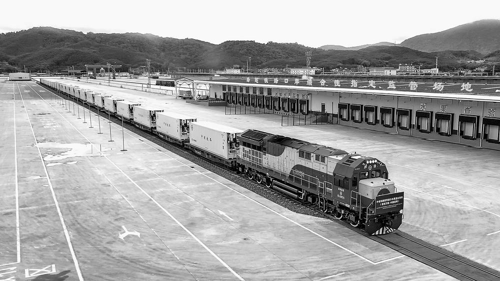 12月3日,一列满载水果的列车由磨憨铁路口岸进境水果指定监管场地驶向中老铁路磨憨站。标志着磨憨铁路口岸进境水果指定监管场地正式投用,而首列全程经铁路运输的进口水果直达列车也由此启程运往全国各地。