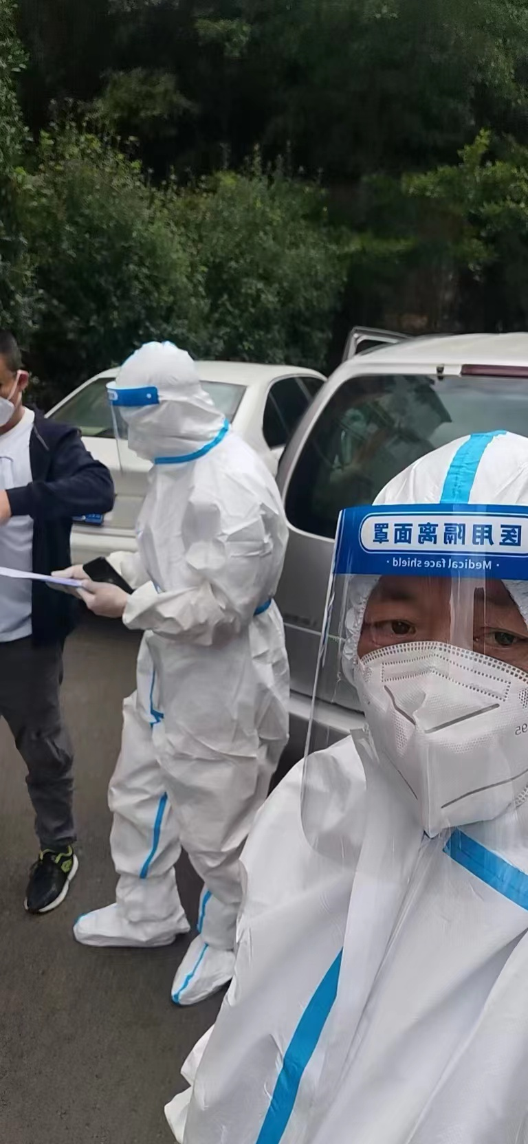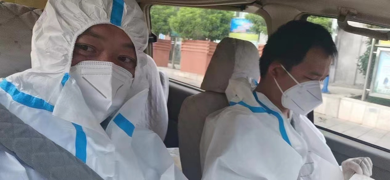 疫情期间,李国振的工作又多了一份消杀的责任。出车戴口罩,高风险、封控区,要穿防护服,每次进出都要用消毒剂对车子、人进行喷洒消毒。