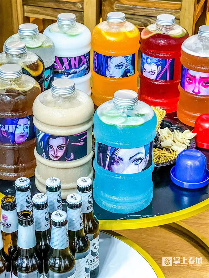 花费100多块,购买容量1L-3L不等的贴着网红风格标签的“吨吨桶”现调酒套餐,再搭配下酒零食、杯子、冰块、扑克牌等游戏工具,一小时左右就能配送上门。世界杯期间,对于昆明的众多球迷爱好者来说或许是个不错的选择。