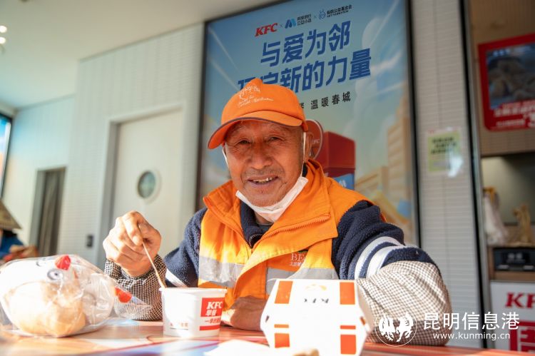 “很开心啊,肯德基好多门店都可以领这个‘K套餐’,对我们环卫工人来说很方便。”昆明市度假区京环海洁公司的环卫工人白师傅说。