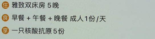 最近,市内有酒店推出了“抗疫套餐”,398元一晚的费用包含了早中晚三餐和一支抗原检测试剂。