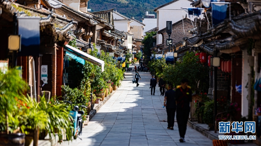 巍山古城小巷中人来人往(2022年10月28日摄)。新华网 刘云 摄