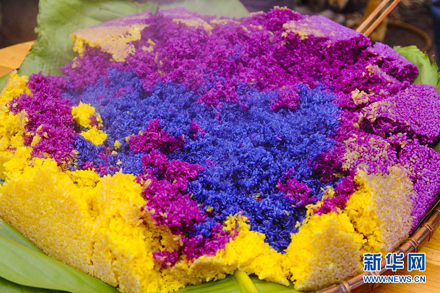 壮族七彩花米饭(资料图)。新华网发(河口县融媒体中心 供图)