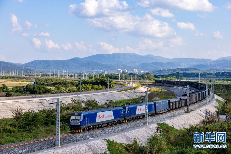 满载货物的列车行驶在中老铁路上(资料图)。新华网发(徐章位 摄)