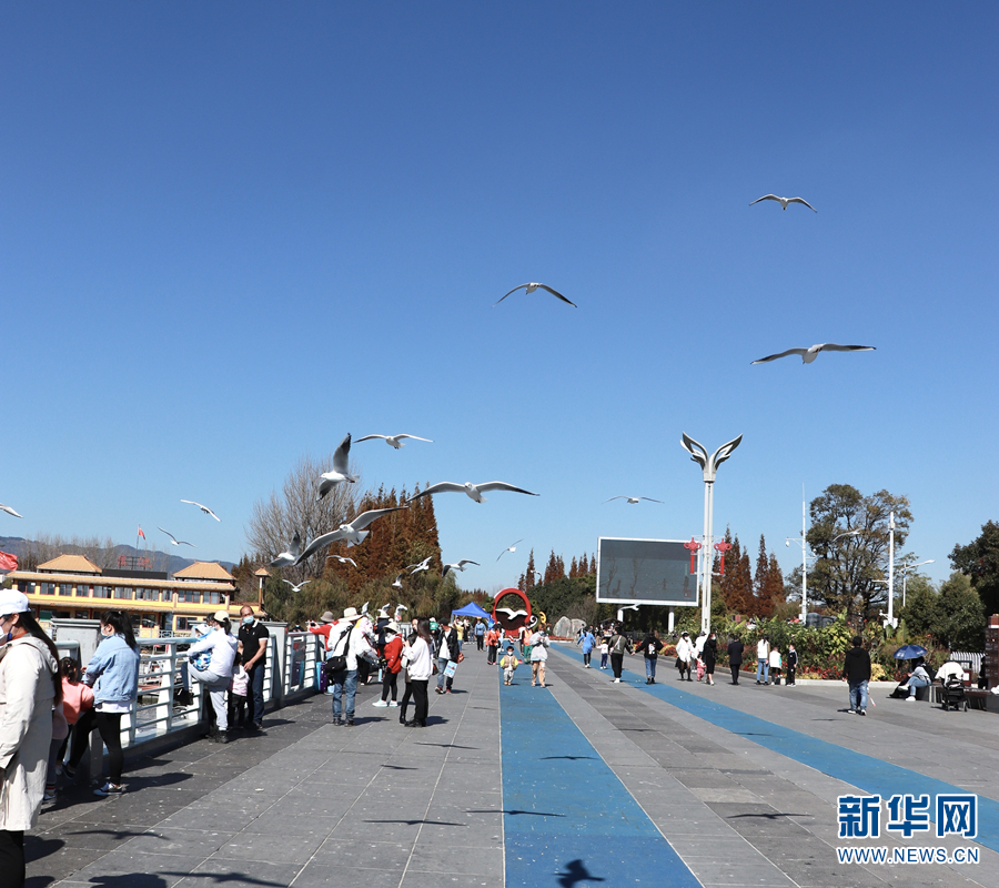 人们在海埂大坝观鸥景象(11月26日摄)。新华网发(王小羽 摄)