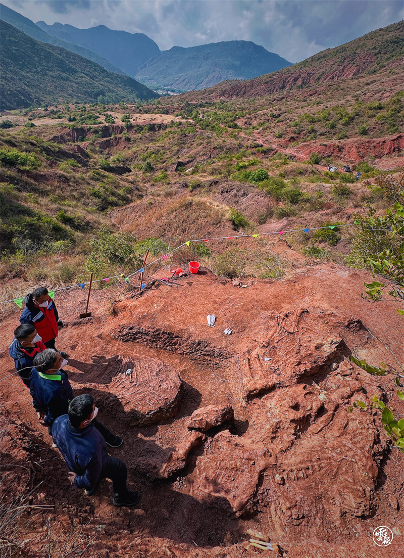 28日在世界恐龙谷举行的“2022年云南省楚雄州三县市恐龙化石抢救性发掘新闻发布会”,宣告云南省楚雄禄丰市、武定县、双柏县三个县(市)恐龙化石抢救性发掘正式开始。省自然资源厅副厅长陈俊介绍,此次即将发掘的恐龙化石点共9个,其中禄丰市1个、武定县2个、双柏县6个。专家对目前出露的部分恐龙化石初步分析,除双柏县的恐龙化石属于侏罗纪中晚期外,其余8个点的化石均属于早侏罗世。其中,根据武定县万德镇发现的化石推断,当地恐龙生存时代是侏罗纪最早期,比禄丰盆地以禄丰龙为代表的恐龙动物群还要早,有可能成为目前我国发现的最早的恐龙骨骼化石地点。禄丰市待发掘的恐龙点位于川街盆地,初步判断新发现恐龙个体较大,将为该地恐龙与禄丰盆地恐龙对比研究提供科学依据,也将进一步推进禄丰恐龙多样性、分布及演化的深入研究。双柏县大庄镇发现的化石,初步分析属中-晚侏罗世,有可能成为该地首次发现这一时期的恐龙。