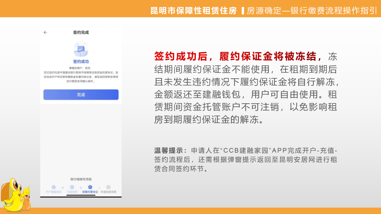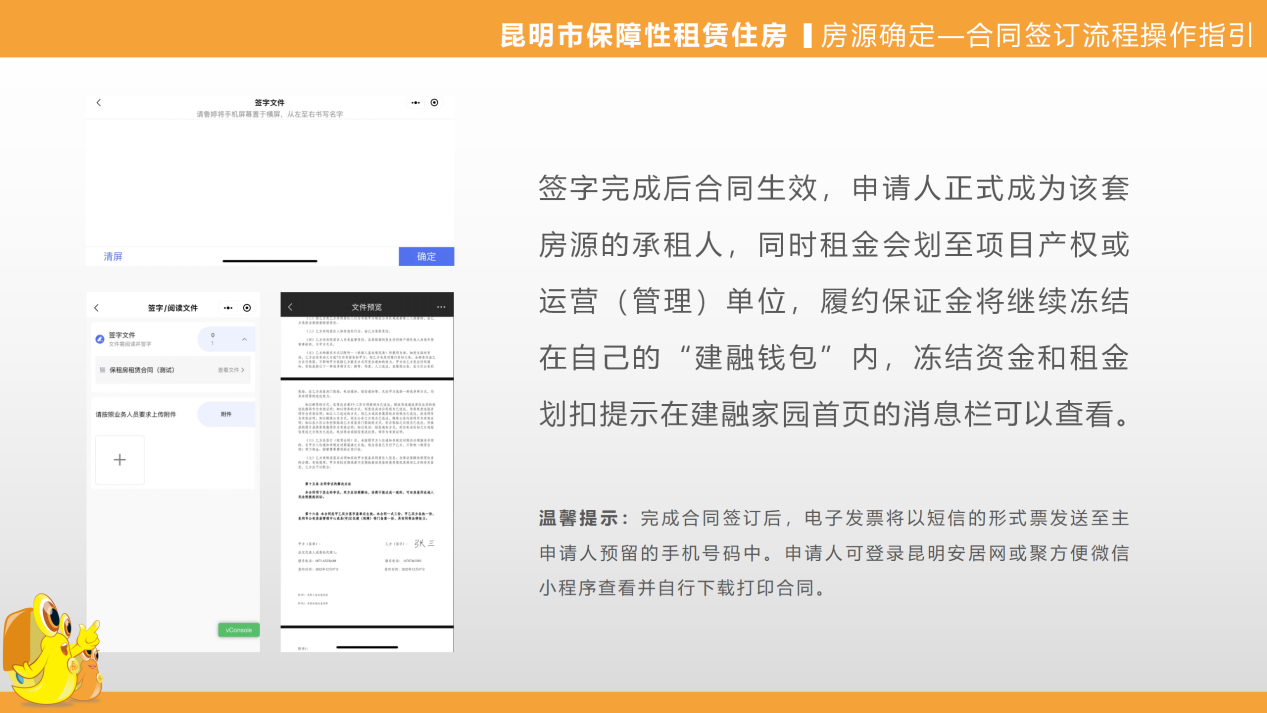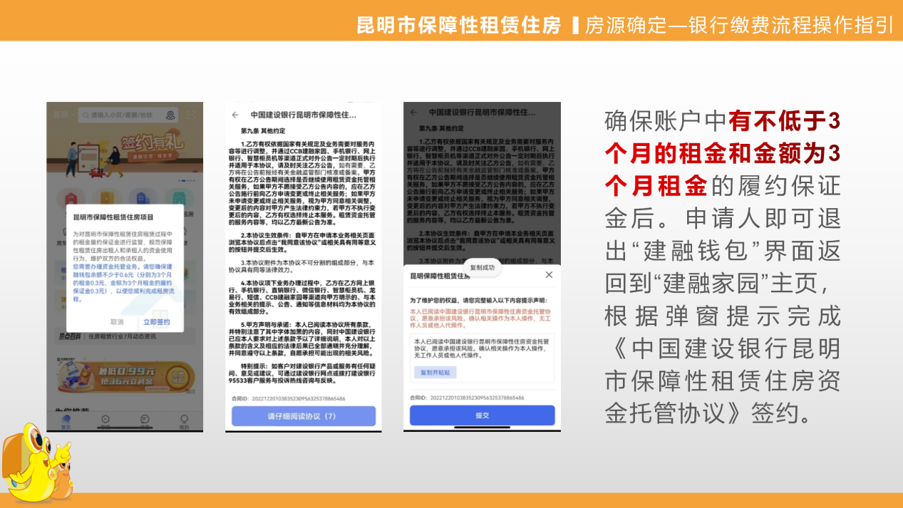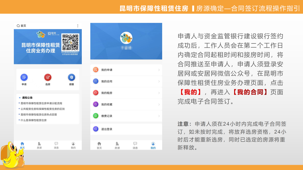 据了解,在房源确定环节中,可分配房源“先选先得,选完即止”,一个申请家庭只可选择一套房源且选定后不可更改,申请人须提前做好相关准备工作,在规定时间内完成缴费签约、签订租赁合同后,即可正式成为昆明市保障性租赁住房承租人。