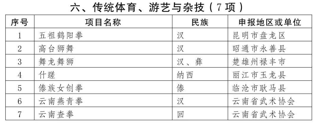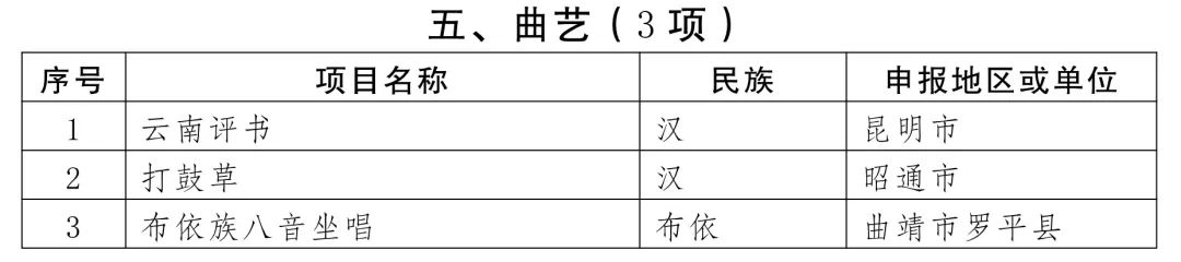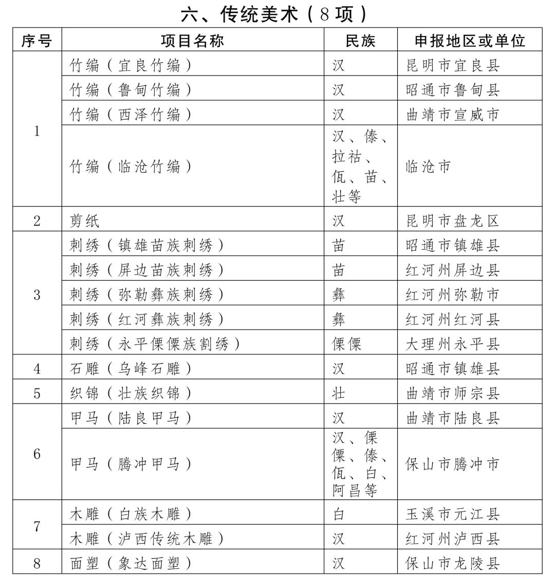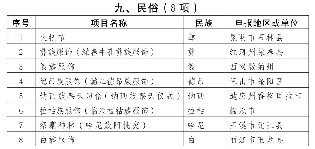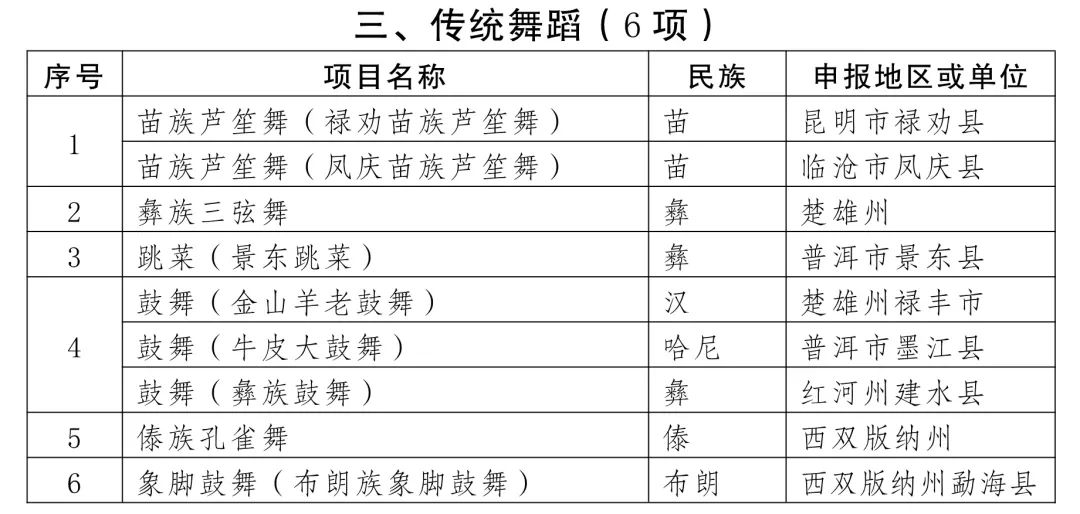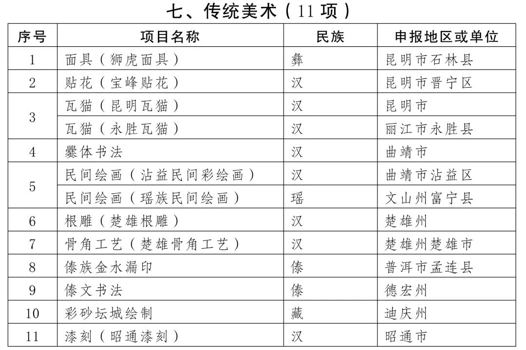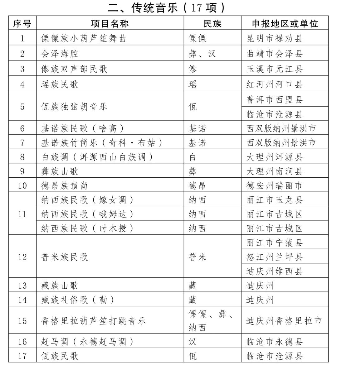 省人民政府批准省文化和旅游厅确定的云南省第五批省级非物质文化遗产代表性项目名录(145项)和省级非物质文化遗产代表性项目名录扩展项目名录(62项),现予公布。