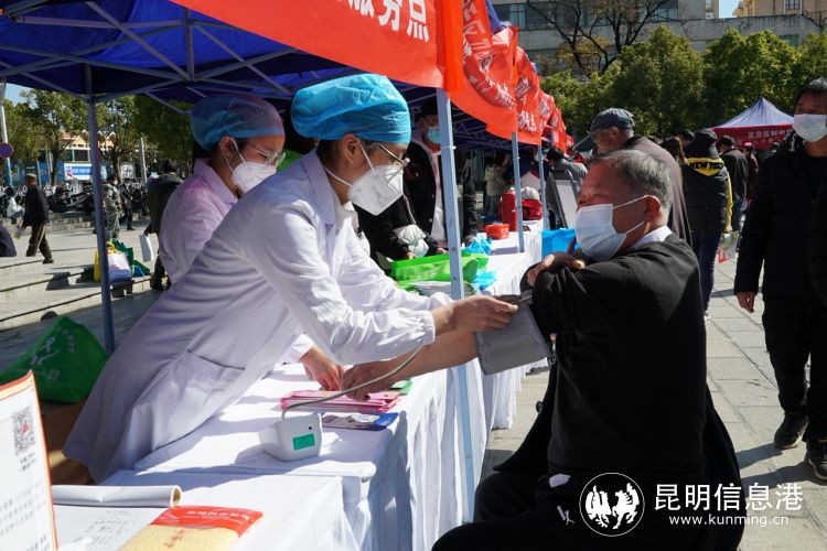“医生,我的血压高不高呢?”“我吃的药感觉没有效果,该怎么办?”现场,在服务台前,群众争相求医问诊,医生们耐心解答并现场开出处方。另一侧,书法家们摆上桌椅、铺开纸张、倒上墨汁,现场挥毫、激情抒写。“我今天领到了书法老师现场写的‘福’字和春联,希望自己在新的一年能有新的进步。”来自呈贡一小的学生说。