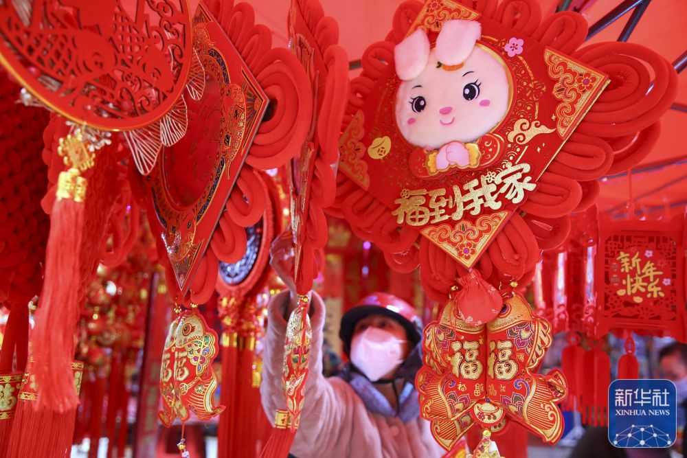 农历兔年春节将至,随处可见各种兔元素的饰品、工艺品,处处洋溢着浓浓年味。