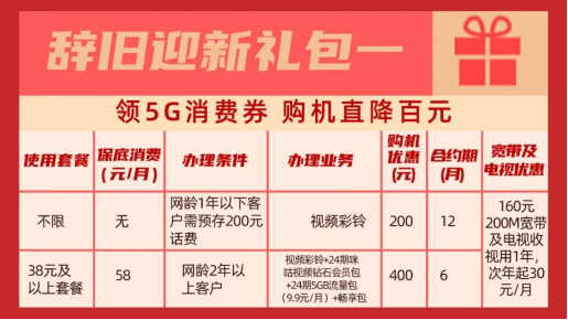 辞旧迎新礼包一:领5G消费券 购机直降百元