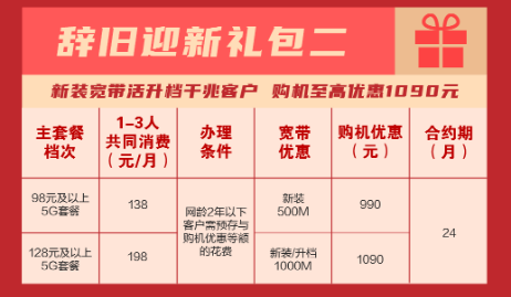 辞旧迎新礼包二:装宽带购新机 享最高千元优惠