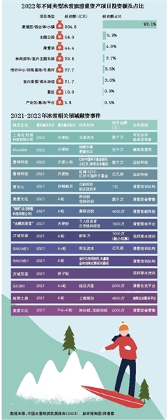 不过,由于滑雪场建设投入大、模式重,加之滑雪场多为“开一季,吃一年”模式,盈利始终是一个难题。据了解,北京周边雪场落差在200米左右,而崇礼、松花湖、北大湖等大众雪场的落差在400米-500米。雪场之所以集中在上述落差,原因在于成本相对可以接受。一方面,管线需要沿线铺设,多级加压打上去造雪。据悉,北京南山滑雪场的雪道面积为40万平方米,需要40台造雪机,崇礼的雪场造雪机数量多达200-300台。另一方面,雪道建设也需要高额资金,并且需要持续投入,一公里雪道的成本都非常高昂。从海外经验来看,滑雪度假是雪场的主要商业模式之一,即集合滑雪、度假和休闲等多功能于一体,而此类模式在国内基础仍然较为薄弱。不过,近年来度假型项目的投资也在逐步增加。据中国旅游研究院统计,2022年冰雪旅游度假区/综合体/小镇类项目投资额达904.6亿元,占总投资的82.1%,而2018-2021年为60%。