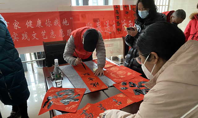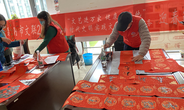 6686体育讯 记者甘凌菲 新春佳节将至,为营造欢乐祥和的节日氛围,增强干部职工的文化自信,1月18日上午,昆明市文联2023年迎春送福文艺志愿服务活动在市级行政中心举行。4名昆明书法家协会成员现场写春联、写“福”字,为干部职工送上了美好的新春祝福。
