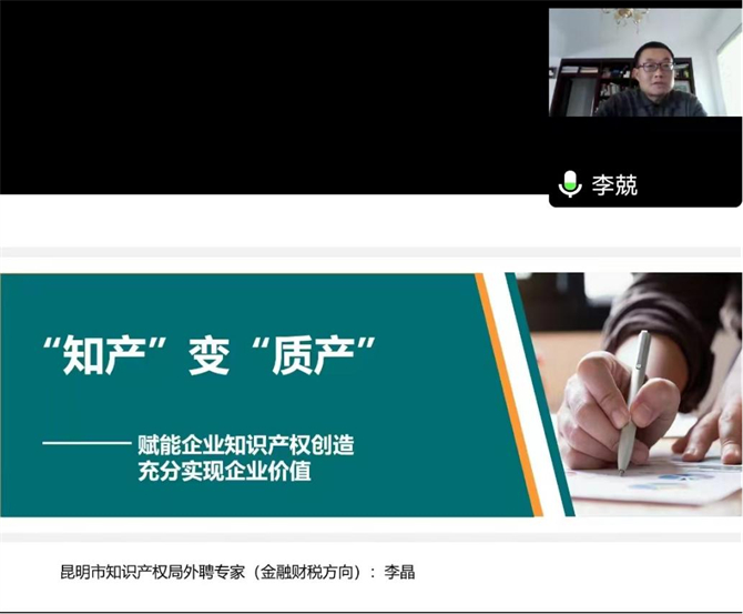 在“创新为王”的时代,核心技术代表着核心竞争力,提升专利质量,培养高价值专利充分实现企业价值,是企业知识产权工作关注的重点。昆明市知识产权局金融方向专家李晶围绕高价值专利、知识产权和企业价值的关系、如何实现企业价值三个方面,作了题为《”知产“变“质产”——赋能企业知识产权创造充分实现企业价值》的专题分享,旨在提升企业在知识产权发掘和保护的实战能力,提高稀贵金属产业科技成果转化整体效能,助力企业高质量发展。
