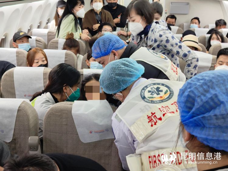 2月3日晚20点,东航MU9759航班,承载着134名旅客从德宏芒市起飞前往上海。飞机平飞后,20点48分,乘务员巡舱发现一名旅客面色苍白,呼吸急促,立即上前查看询问旅客身体情况,旅客自述有心肌缺血、心肌炎和高血压病史,现因胸闷、头晕、心脏疼痛需要吸氧,乘务员立即报告客舱经理和机长,并按应急程序广播寻找医生。听到广播后一名全科医生和一名护士立即表明身份,来到患病旅客身边和乘务组一起对患病旅客展开救治。乘务员将机上的应急医疗箱和氧气瓶递到医生手中,经初步检查诊断旅客血压为144/98mmHg,脉搏126次/分,医生建议为患者提供糖水并且持续供氧,随时观察。时间持续至21点18分,旅客症状并未好转,医生再次检测患病旅客脉搏后判断病人有心衰迹象,建议飞机尽快着陆,取得医疗救助。