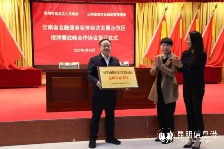 昆明市盘龙区人民政府与云南省地方金融监督管理局建立云南省金融服务实体经济发展示范区建设战略合作伙伴关系,并现场签订战略合作协议,明确了下一步示范区建设的发展框架和总体思路,优先支持示范区完善区域性金融产业链、金融服务中介保障链、提升金融服务实体经济发展质效、建立示范区普惠金融银政企联合宣传工作机制,强化对示范区政府性融资担保的信贷支持作用和金融创新发展能力,同时支持并鼓励引导省内金融机构强化对示范区企业的信贷支持力度。