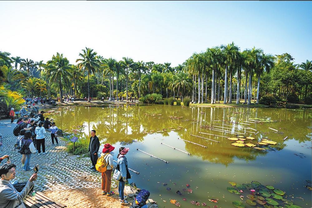 2月12日,游客在中国科学院西双版纳热带植物园内游览。 新华社记者陈欣波/摄
