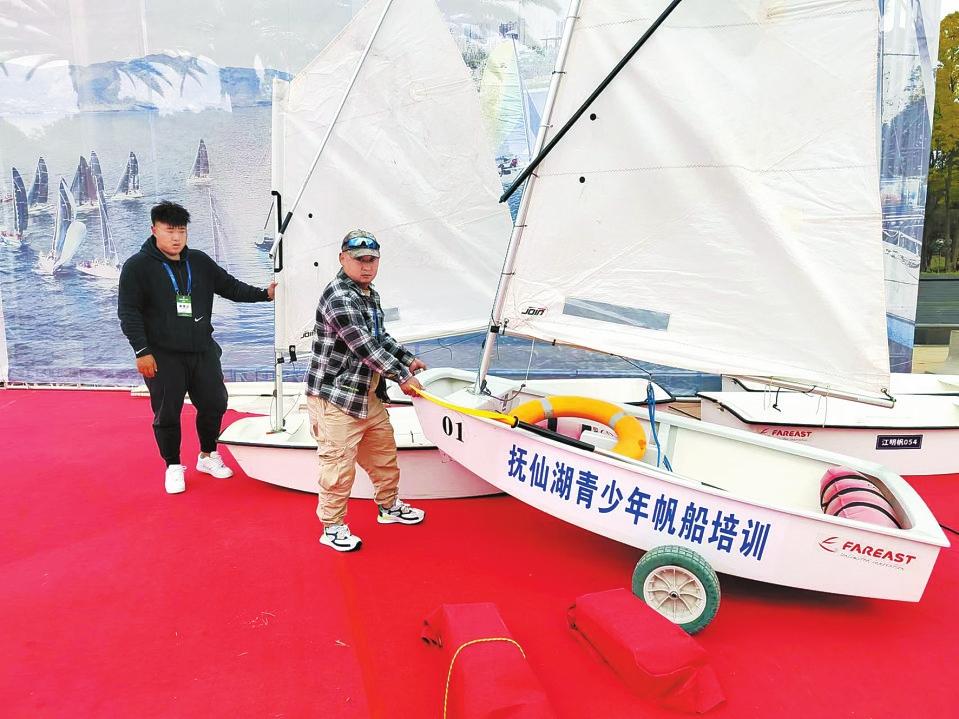 带着大大小小的几艘帆船,邓新强与他的团队成员从抚仙湖来到省体产大会。“因为帆船拆卸比较麻烦,吊装、运输费用比较高,所以帆船的种类未能全部在这次大会上得到展示。”