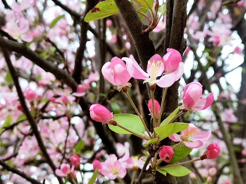 正是海棠盛开季,在美奂公园,海棠花开美景如画,海棠花廊唯美浪漫,成为时下热门的“打卡地”。不少市民群众在园内一边散步,一边欣赏着这片浪漫的春色。