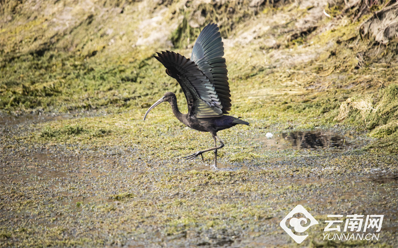 日前,摄影爱好者在抚仙湖拍摄到国家一级重点保护野生动物——彩鹮。