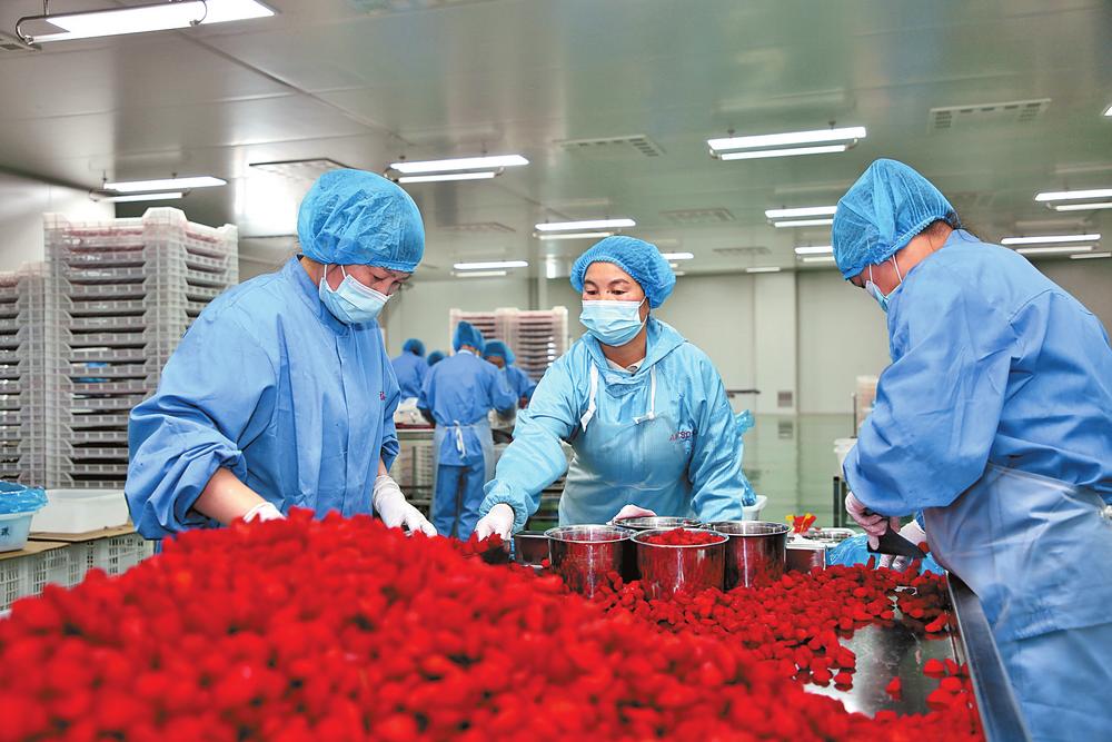 工人分拣草莓干