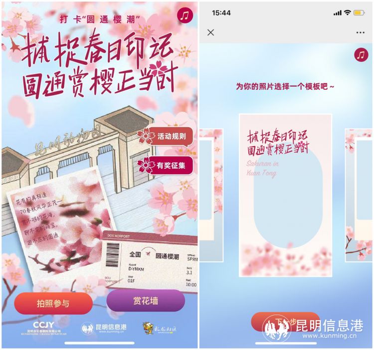 于花海间漫步,一路繁花相随,对于昆明人而言去昆明动物园赏樱已成为一年中不可错过的美好体验。为此,本届樱花节特别推出“圆通樱潮”互动小程序。市民游客扫码进入程序后,点击“拍照参与”选择照片模板上传或拍摄樱花照片,挑选你喜欢的宣传语后即可得到一张专属樱花海报。程序内同步设置“与樱相伴”樱花节随手拍活动,专属海报生成后点击“一键投稿”即可参与到活动中,并有机会赢取活动盲盒礼包。