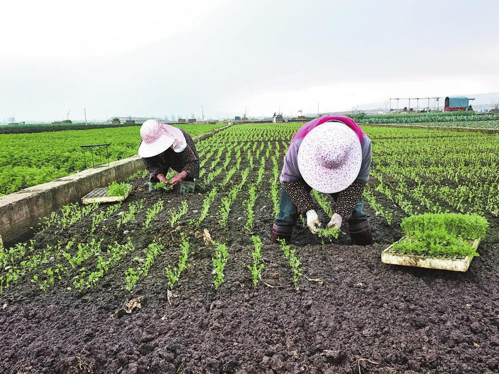 在秀山街道大树社区,村民们有的忙着翻地耙田,有的忙着栽种菜苗。“今天翻好这块地,明天就把芹菜移栽进去。我家还有两亩地种的是莴苣,下个月就可以采收了。”农户赵兴亮说,“按目前的行情,今年的收入能突破4万元。”