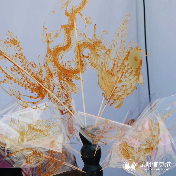 糖画是一种传统民间手工艺,以糖为材料来进行造型,民间俗称“倒糖人儿”。糖画,分为平面糖画与立体“倒糖饼儿”或“糖灯影儿”糖画两种。它是地道的民间画种,颇具特色的街市艺术。由于糖料的流动性,即使相同的形象,亦不会出现雷同的造型。樱花节上,昆明市盘龙区非物质文化遗产代表性传承人陈章洪将现场制作糖画,传承非遗糖画技艺。