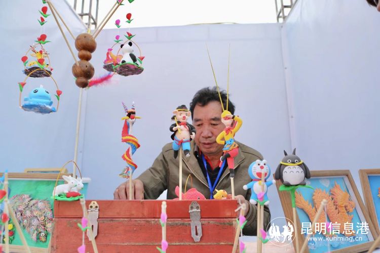 面塑,俗称面花、礼馍、花糕、捏面人,是源于山西的汉族民间艺术之一,以糯米面为主料,调成不同的色彩,用手和简单工具,塑造各种栩栩如生的形象。樱花节上,从事面塑三十余昆明市盘龙区非物质文化遗产传承人吴应德,将现场捏制面塑。