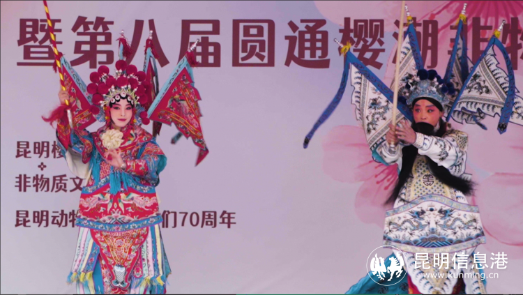 除代表性非物质文化遗产展示系列活动外,3月4、5、8、11、12日14:00还将在昆明动物园中心区舞台,举行云南民族民间舞乐、戏剧展演。演出剧目为滇剧优秀传统折子戏《游御园》《三岔口》《法场斩妖》《待嫁》片段,及融合文学,音乐,舞蹈,美术等诸多表演元素的戏剧《古滇新韵》。